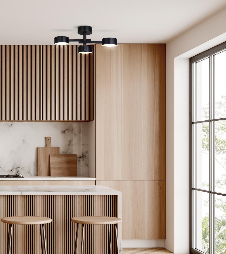 MONTGOMERY, LSF315A03BK, MBK Color, 3 Lt LED Semi Flush Mount, Acrylic, 33W LED (Integrated), Dimmable, 3000K 2100Lumens, 4000K 2150Lumens, 5000K 2100Lumens 3CCT Switch, 24.25inch W x 9.375inch H x 10.75inch D