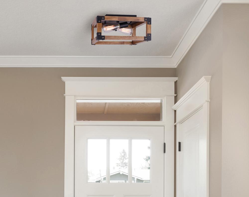Moss 2 Light Flush Mount, Wood Finish