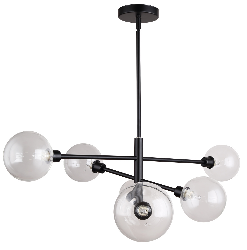 Sporting a retro vibe and six extending arms, the Nash chandelier is sure to add a dynamic element to any room. Available in classic chrome, black or nickel, the Nash is poised to be your conversation starter. Throw on your tweed jacket and James Brown on the turntable, and you're ready to groove under his stylish glow.
