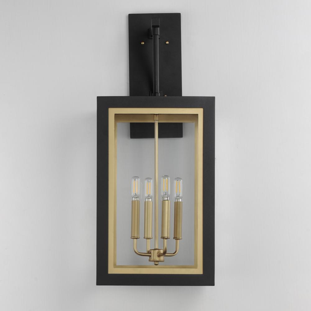 Two-tone frames of Black or White with internal Gold frames provides a neoclassical approach to the squared coach lantern. The sconces jut out from the wall on well-defined trusses that add a contemporary element. Delivering a classic design that suits mos