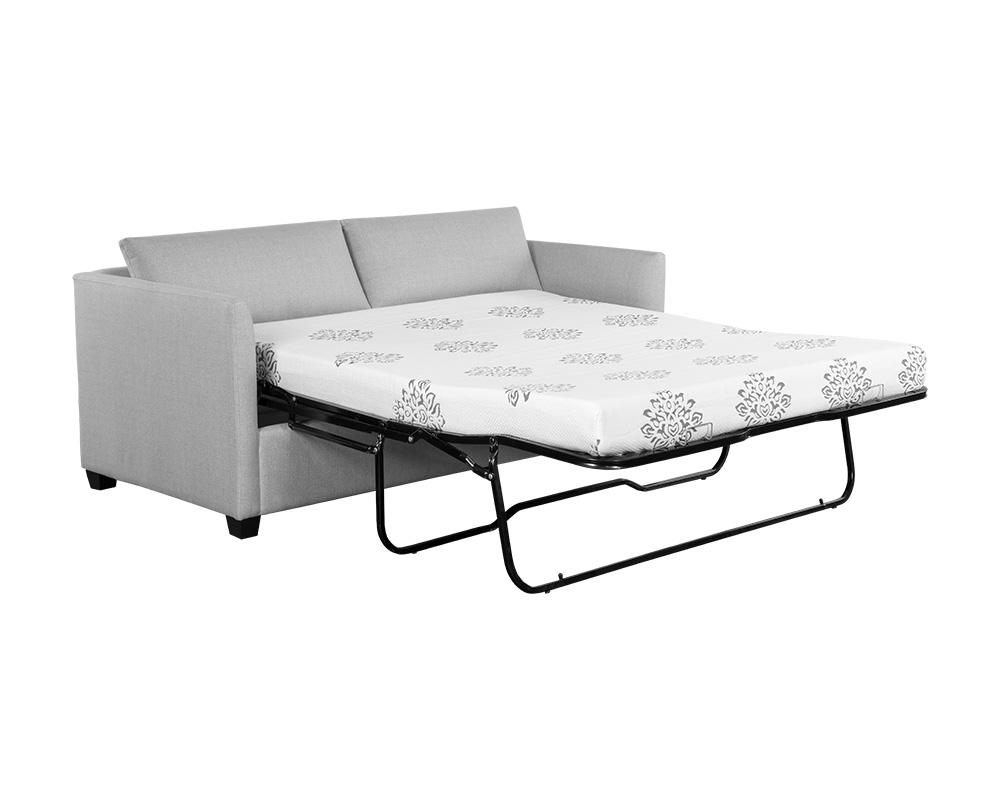 Make an earth-conscious decision while browsing the DOMESTIC by SUNPAN collection. Made with versatility in mind, this sofa bed offers a beautiful modern style that is ideal for any space. Features a compact design and a queen size memory foam mattress. Stocked in broderick charcoal performance fabric. Completed with an espresso solid rubberwood frame. Broderick performance fabric is made with 33% REPREVE Polyester; it is moisture repellent, durable and easy to clean. REPREVE polyester is a high-quality yarn made from recycled post-consumer plastic bottles.