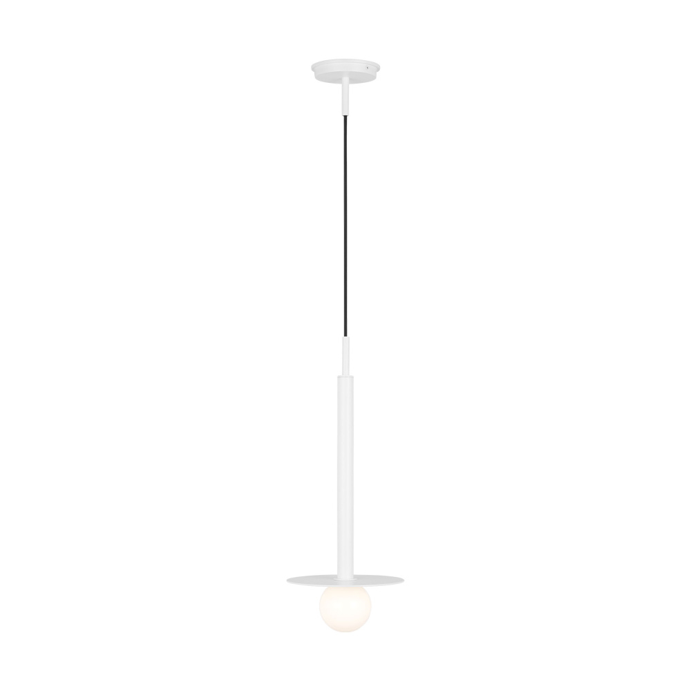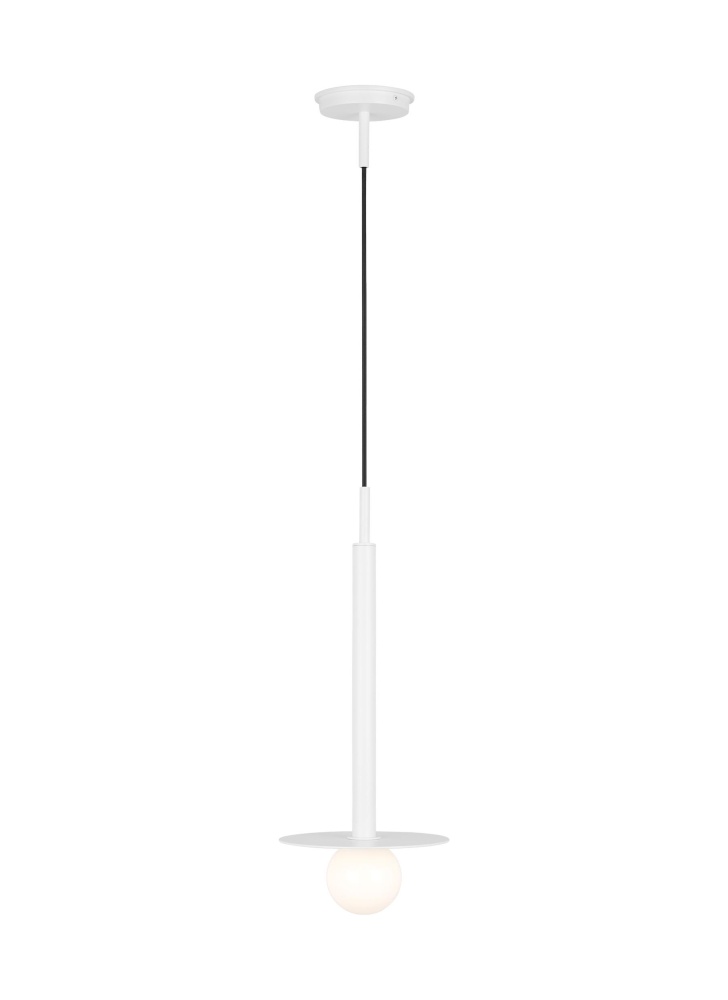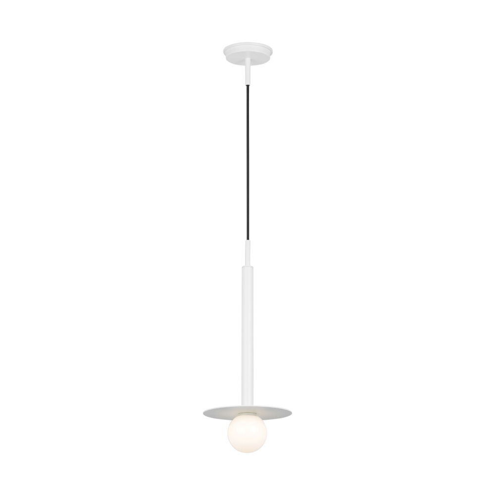 Nodes task, ceiling and wall lighting is minimal yet bold, highlighting Kelly's distinctive juxtaposition of mixed-materiality and curvilinear form. Light radiates from milk glass globes set against metal discs. All fixtures can be used or without the discs. The cast canopy is available in modern finishes. Hanging fixtures within this family feature black fabric cords, while pivot sconces can be cord and plug or hard wire.