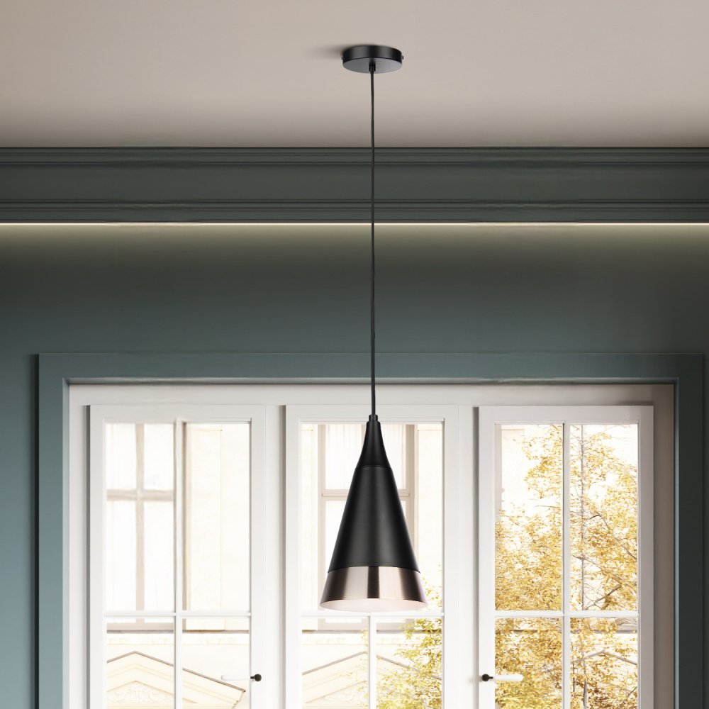 NOIRE 1 Lt Corded Pendant, Matte Black and Gold Finish