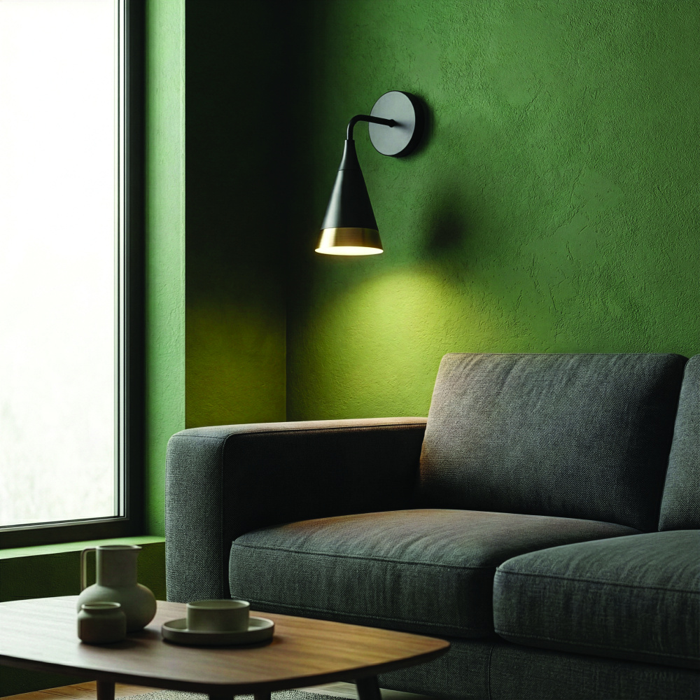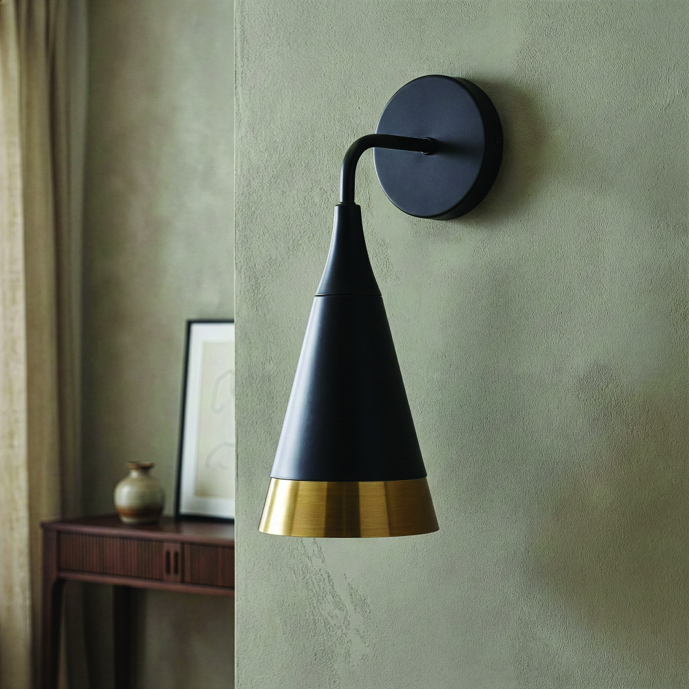 NOIRE 1LT Modern Wall Light Matte Black and Gold Finishes, Metal Shade