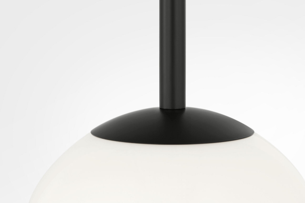 Nube 1?Light Pendant features a single milk glass globe seemingly floating below a slender cord. The fixture maintains contemporary appeal with soft diffused light and minimal supporting structure. Its pared-down form is suited for hallways, stairwells, or in multiples over counters.