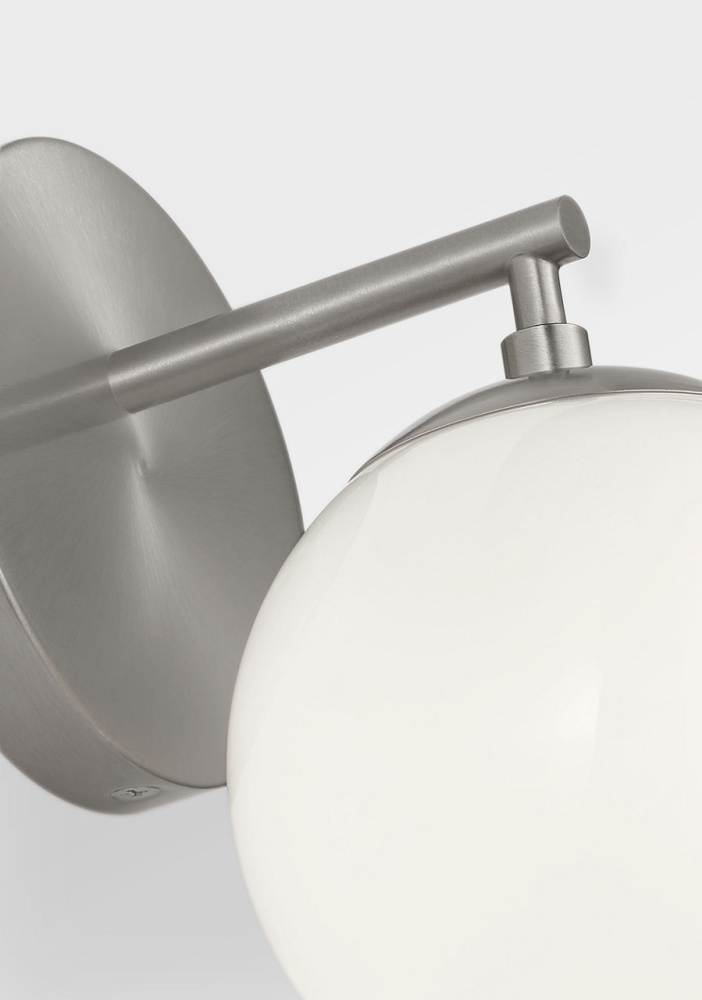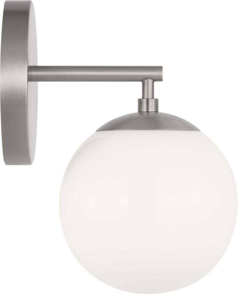 Nube 1?Light Pendant features a single milk glass globe seemingly floating below a slender cord. The fixture maintains contemporary appeal with soft diffused light and minimal supporting structure. Its pared-down form is suited for hallways, stairwells, or in multiples over counters.