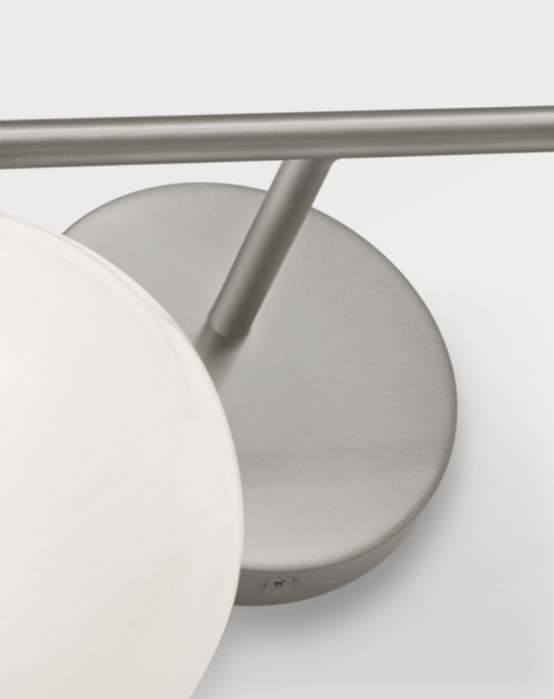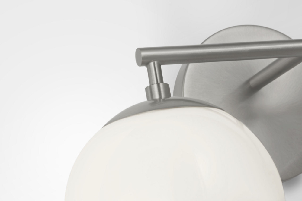 The Nube Vanity fixtures reinterpret the floating globe motif for wall-mount use. Whether in the 1?Light, 2?Light, or 3?Light format, milk glass spheres appear to hover just beneath a horizontal bar mounted to the wall plate. Designed for bathrooms, powder rooms, or corridor lighting, the vanity series provides flattering illumination at face height while maintaining the airy silhouette of the chandelier variants.