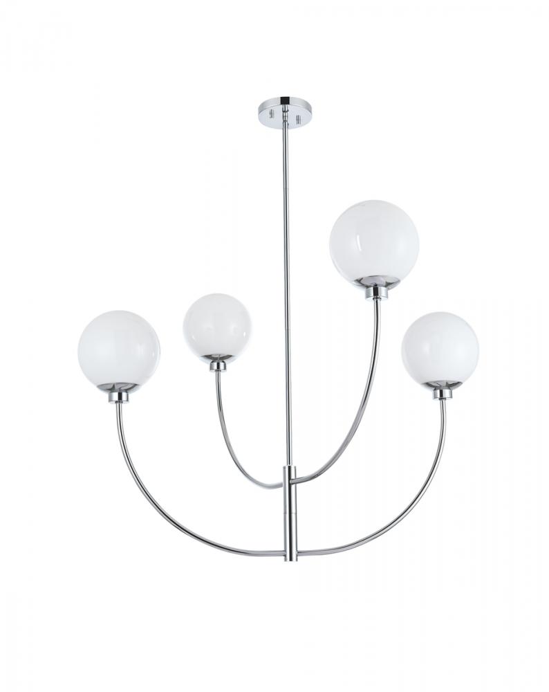 Make a statement in your interior with this unique pendant. Its swiveling arms with glass frosted globes are sure to be a conversation starter and a focal point in any room.