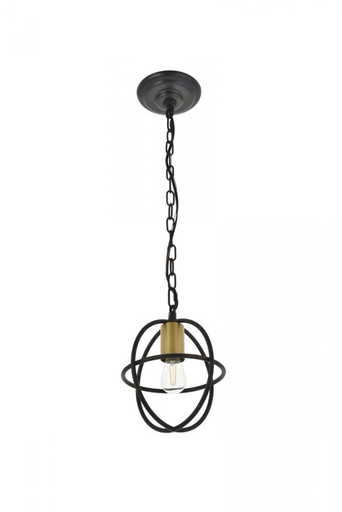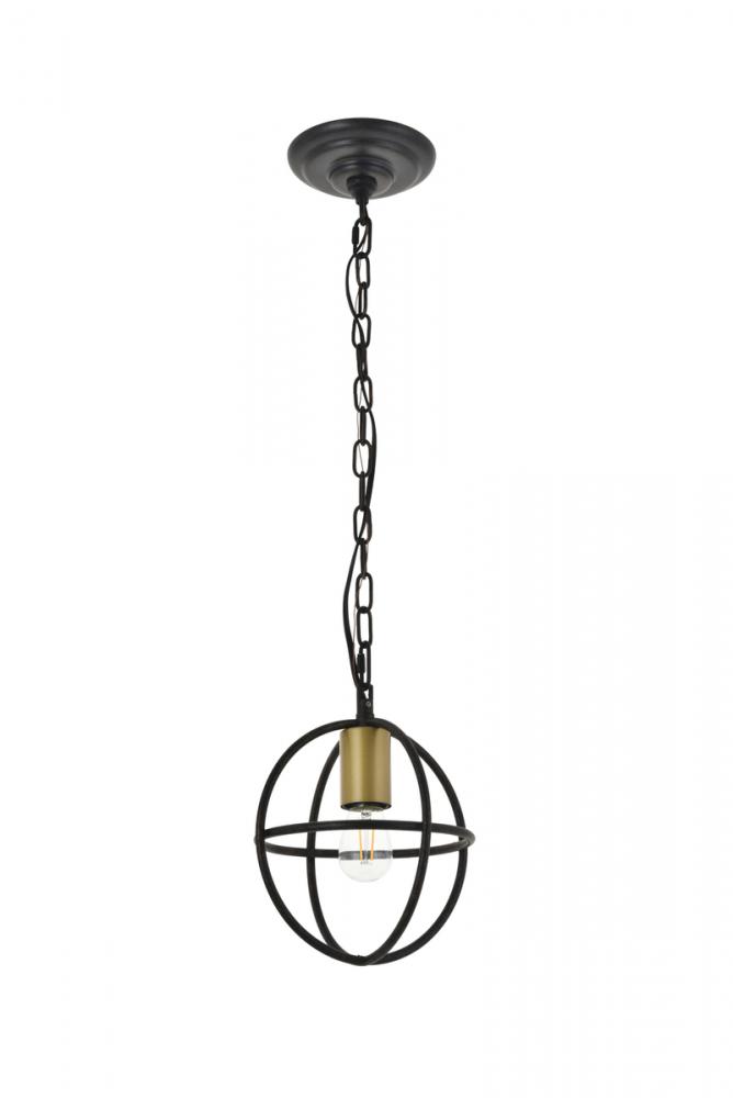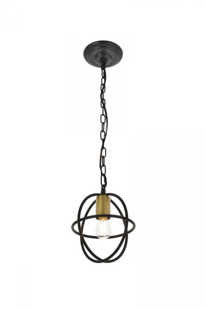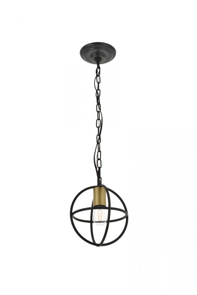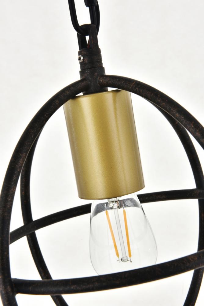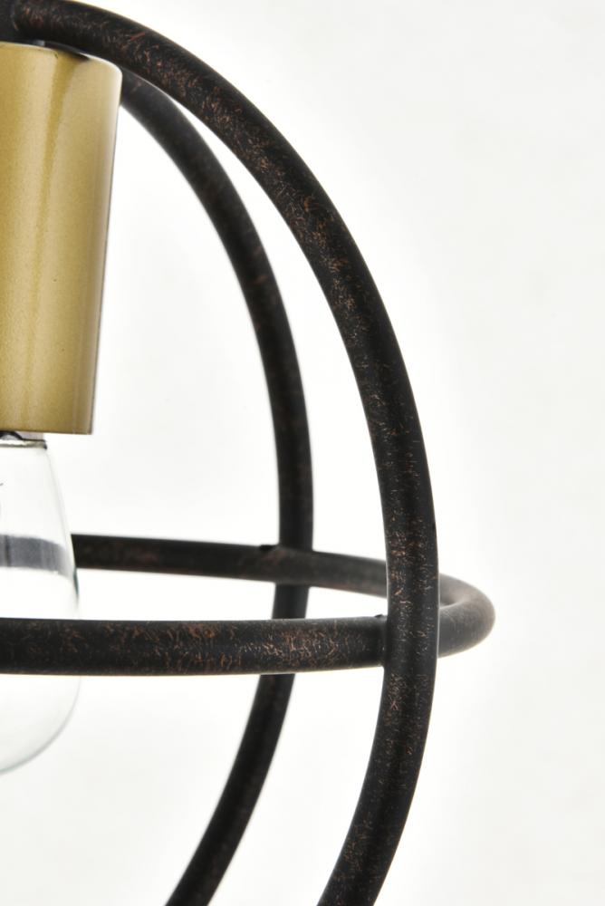 Two-toned brass and dark brown finish open gyroscopic frame with a light within, giving off an old world charm