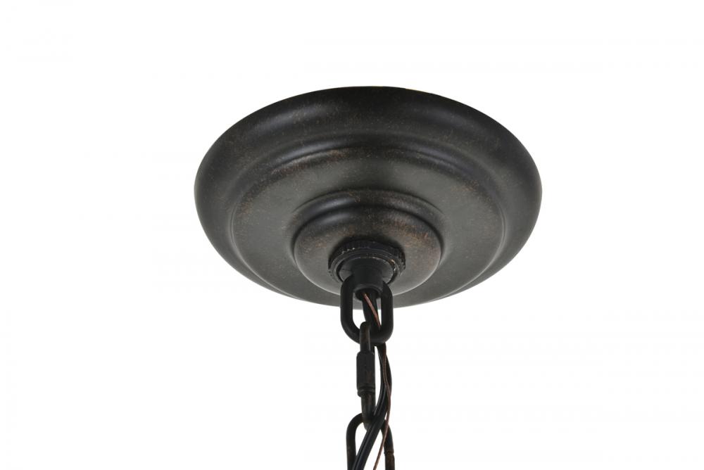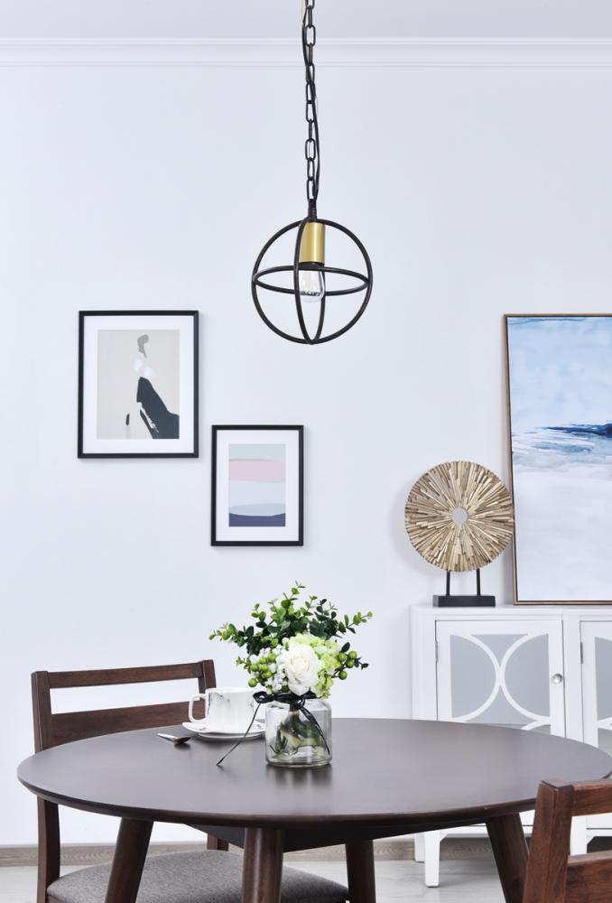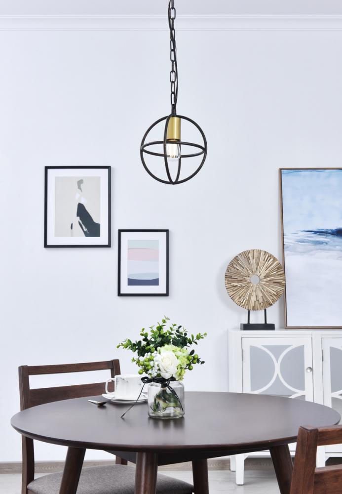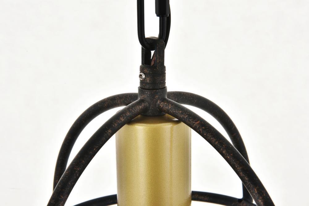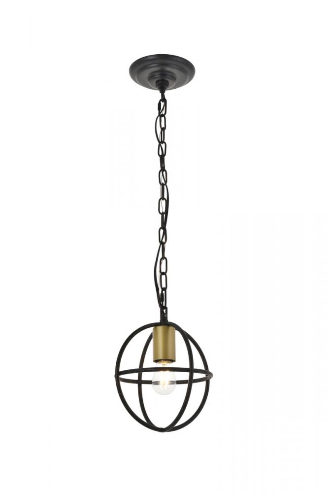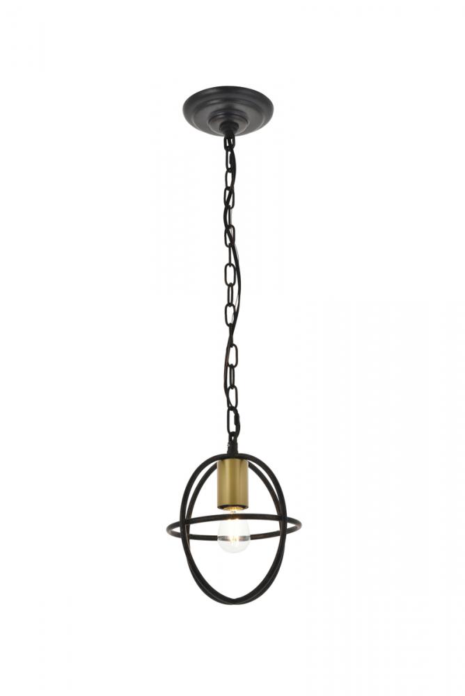 Two-toned brass and dark brown finish open gyroscopic frame with a light within, giving off an old world charm