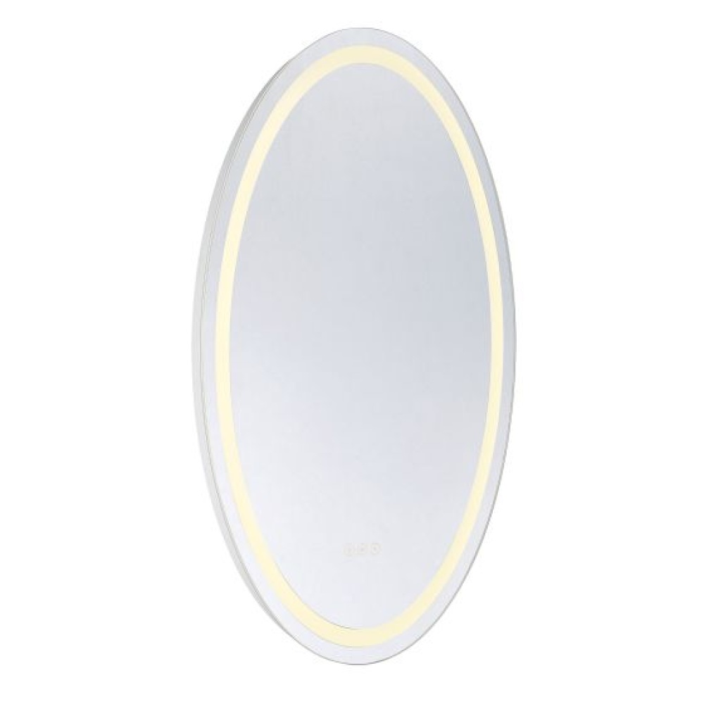 Make every morning brighter with this Savoy House Oneida oval front lit LED mirror! Its sleek and beautiful design is loaded with thoughtful, useful features, all controlled by touch. Choose from three different color temperatures - 3000K, 4500K and 6500K - to find the light that is perfect for you. Increase or decrease the brightness using the stepless dimmer. Keep things clear with the defogger, which shuts off automatically after one hour. For convenience, Oneida even remembers and restores the last used illumination setting! This mirror is free from lead and copper, comes with mounting hardware and is backed by a 3-year warranty. Uses 38 watts to deliver 896 lumens at a CRI of 90+. Suitable for damp locations. Oneida is 36" in height, 24" in width and extends 1.88" from the wall. Can be mounted horizontally or vertically.