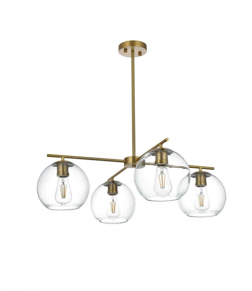 Features a clear glass shade, offering bright, unobstructed light and a clean, modern look.