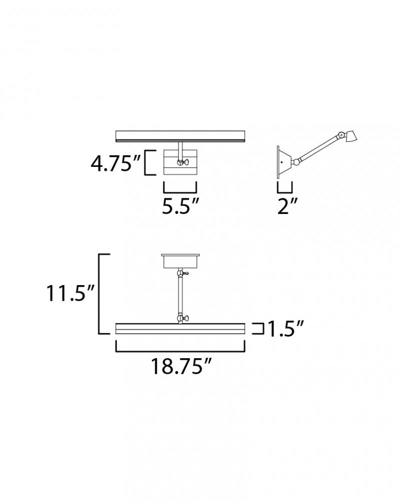 Pasha combines architectural lines with regal inspiration. Thin Trapezoid shades function as elevated task lighting or picture lighting. The arm from the back plate to the light source is extendable allowing you to position the strip of light housed in the