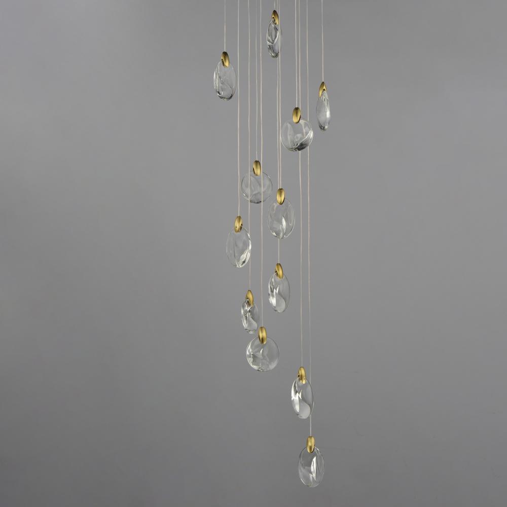 As if naturally formed from the ebbing shores of a riverbed, smooth and irregularly shaped crystal pebbles are suspended by cast metal clasps in a Polished Gold finish. Discreetly illuminated by concealed LED light sources within the clasps, additional dow