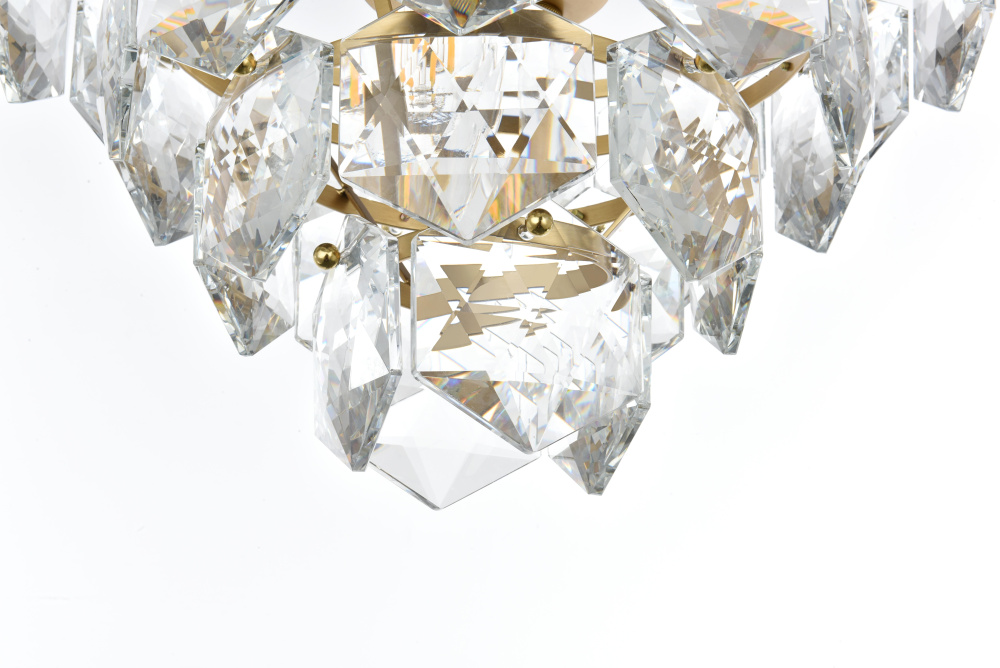 Features a stunning multi-tier arrangement of faceted crystals cascading down, creating a layered, dynamic visual effect that draws the eye and adds depth to any room.