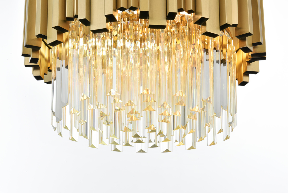 The staggered clear glass pieces add depth and dimension, creating a layered effect that enhances the visual appeal.