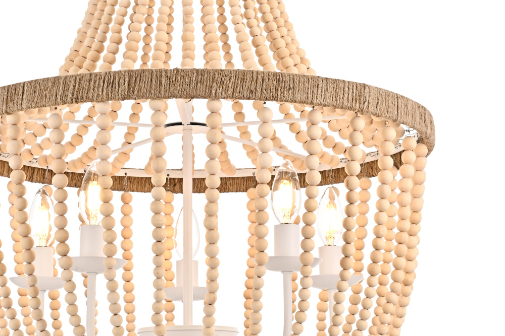 Raw beauty emerges through natural wooden beads and rustic rope detail, bringing organic warmth and authentic character to any room.