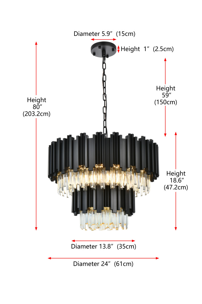 Elegant 3400G24BK - Pendant D24"H19"L6 Black