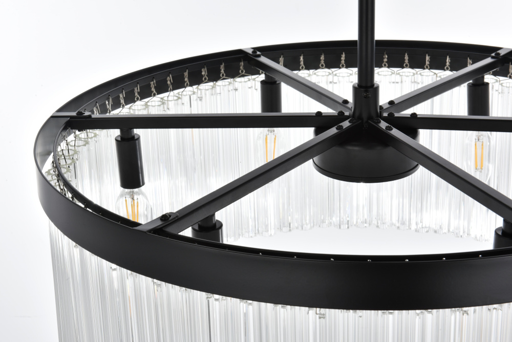 The black finish pairs strikingly with the shimmering glass, creating a bold contrast for moody, luxurious interiors.