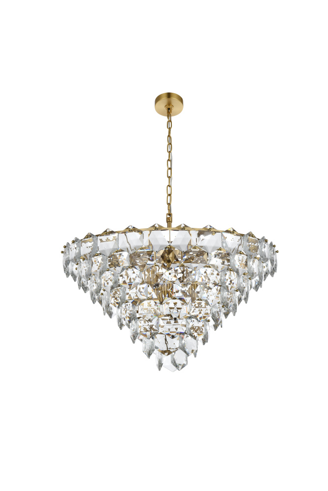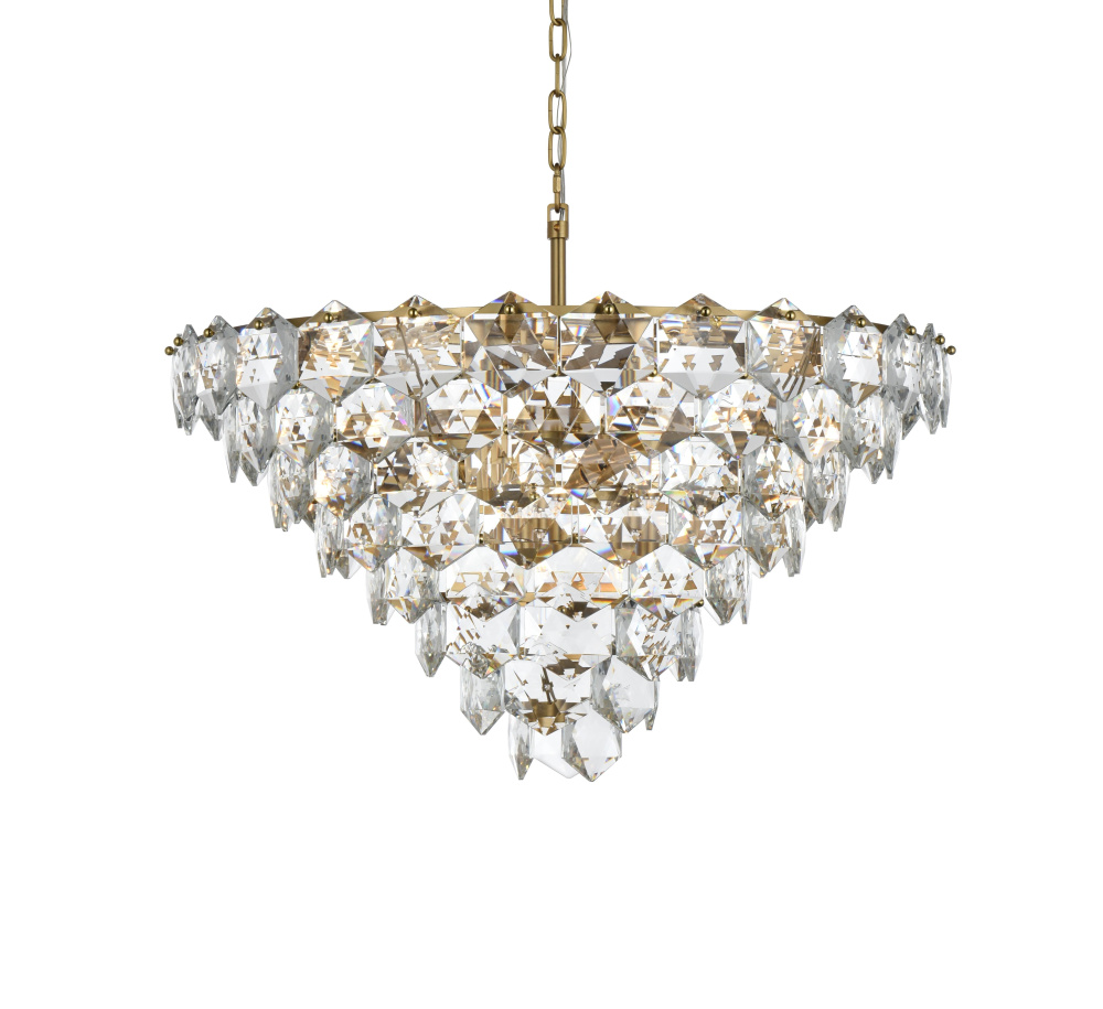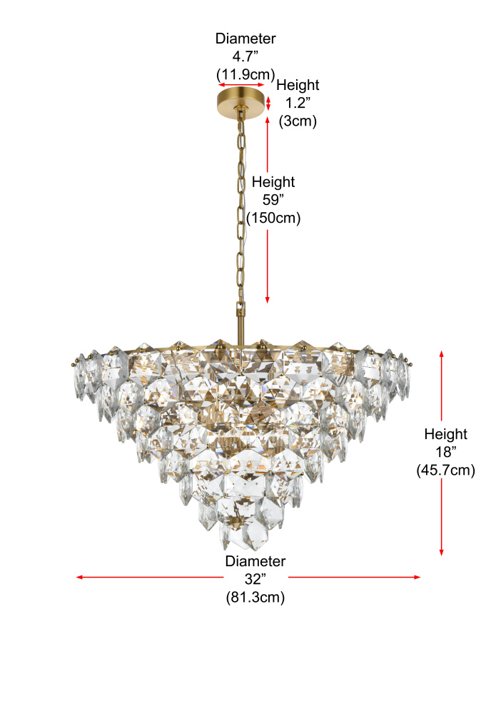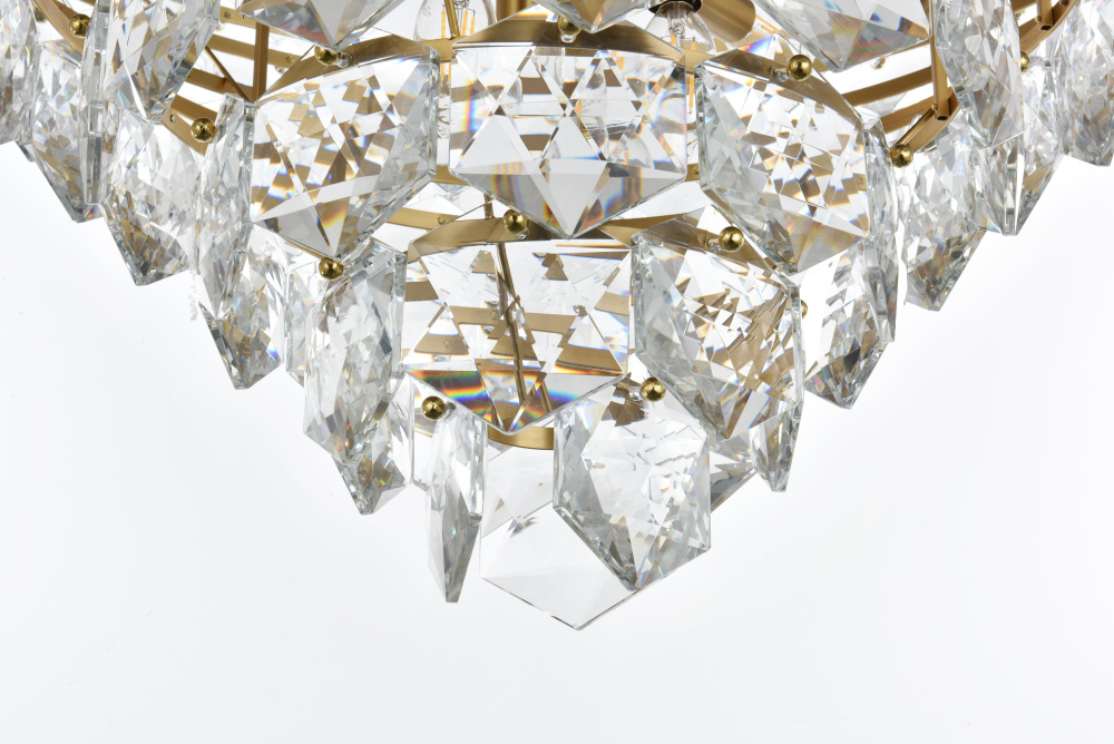 Features a stunning multi-tier arrangement of faceted crystals cascading down, creating a layered, dynamic visual effect that draws the eye and adds depth to any room.