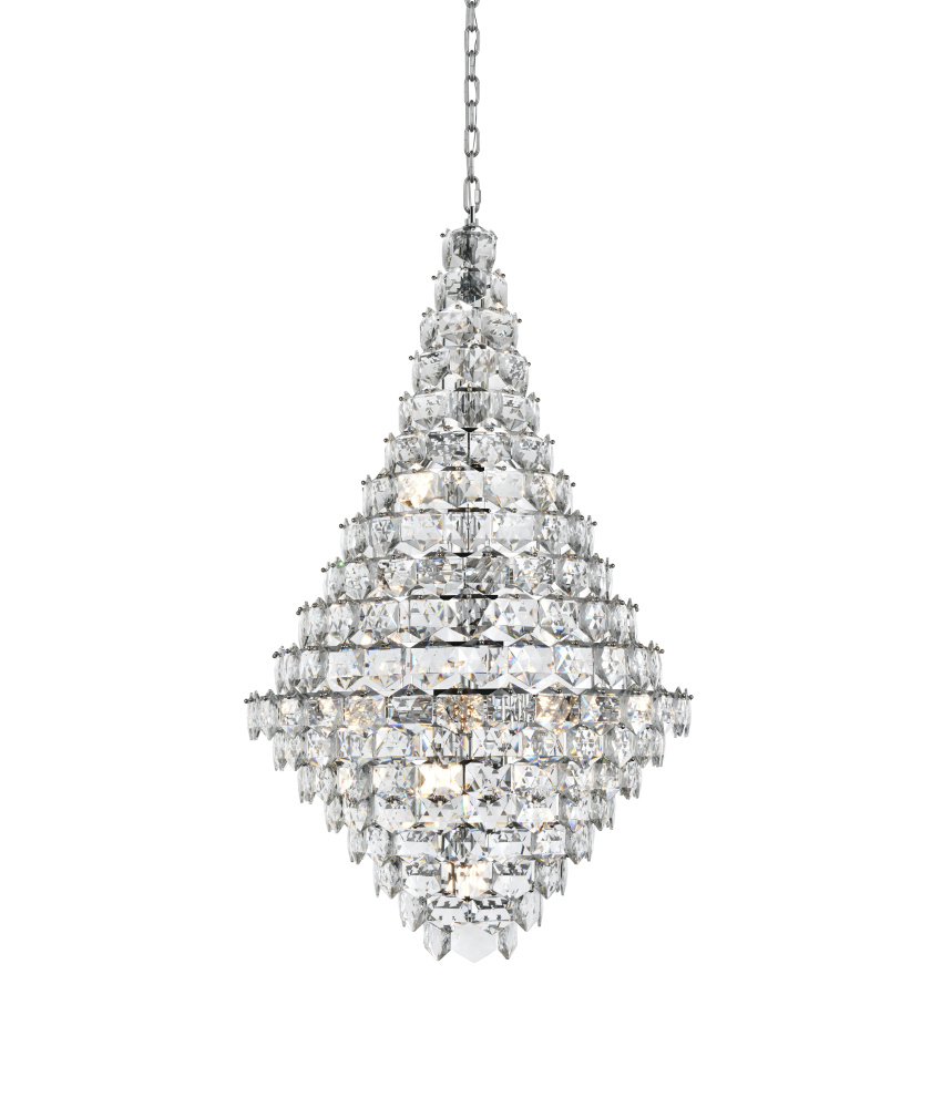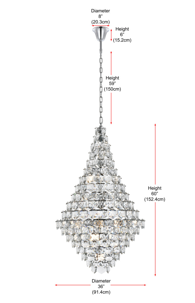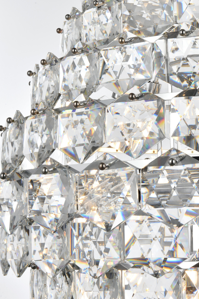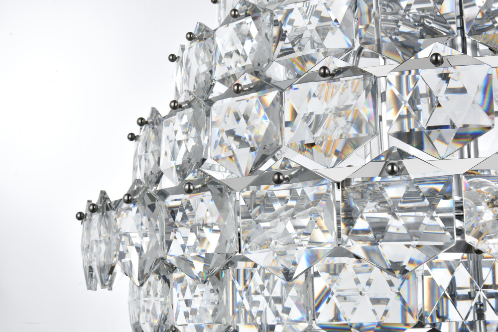 Showcases a mesmerizing cascade of crystal tiers, creating layers of brilliance that draw attention and enhance the ambiance.