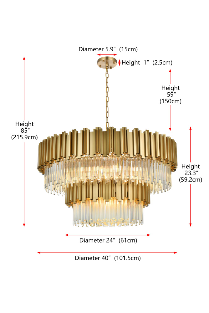 Transform your space with this stunning chandelier, a dynamic fusion of iron and staggered clear glass that exudes contemporary style and architectural artistry. The layered glass refracts light beautifully, creating a radiant display of glowing brilliance that fills the room with warmth and sophistication. The staggered arrangement of the metal and glass adds depth and dimension, making this chandelier an eye-catching centerpiece. Fully dimmable, it allows you to adjust the ambiance to suit any mood, from bright and vibrant to soft and inviting. Available in satin gold for a warm, luxurious vibe, chrome for sleek modernity, and black for bold, dramatic contrast, this fixture comes in various sizes to perfectly complement any space. Complete with a matching canopy, it’s an ideal choice for dining rooms, living rooms, or offices. Add a touch of refined geometry to your décor and bask in the brilliance of this radiant desi