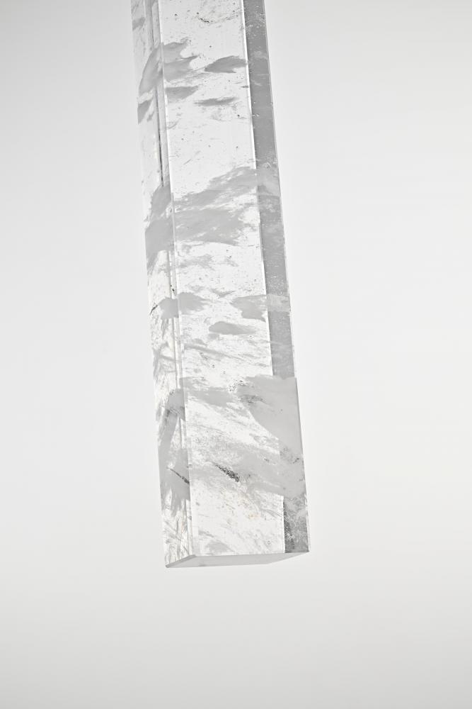 Immerse yourself in the captivating allure of our natural crystal pendant, a stunning piece that embodies the true artistry of nature. Each crystal tells a unique story, with ethereal white clouds and mysterious black specks forming a mesmerizing dance of elements within its clear surface. These wispy inclusions create a serene, dreamlike landscape that evokes both wonder and tranquility. Meticulously crafted over millennia, no two crystals are alike, making each pendant a one-of-a-kind masterpiece. Whether enhancing a modern minimalist space or adding elegance to a classic interior, this versatile lighting piece complements any style with its natural beauty. Suspended by an adjustable 144-inch cord and illuminating with a warm 3000K light at 480 lumens, it brings both sophistication and a calming ambiance to any room.