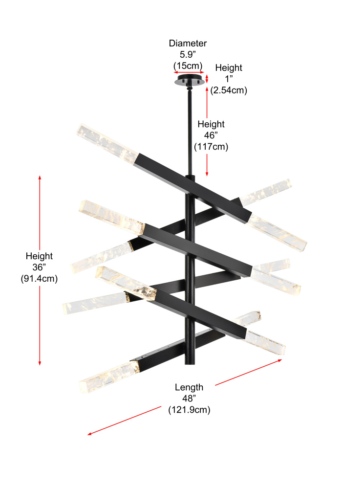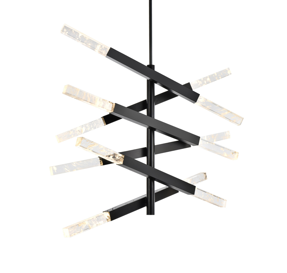 The black finish provides a striking contrast to the glowing crystals, adding a bold, edgy vibe to modern interiors.