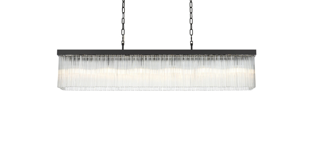 The rectangular frame adds geometric refinement, ideal for linear dining tables or elongated spaces.