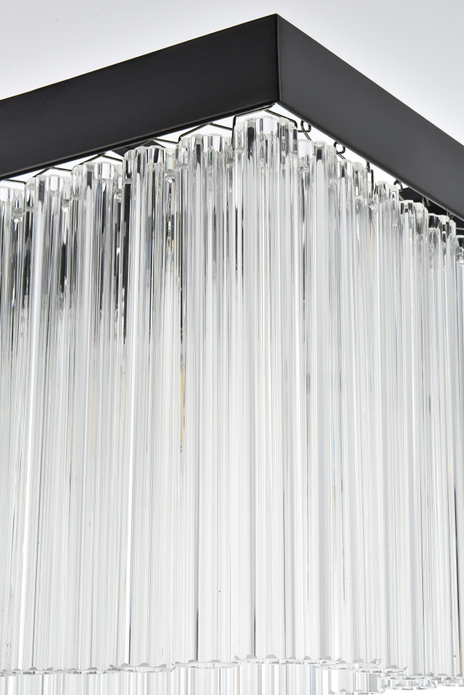 The clear ribbed glass panels cascade in shimmering layers, refracting light into a dazzling, multidimensional display.