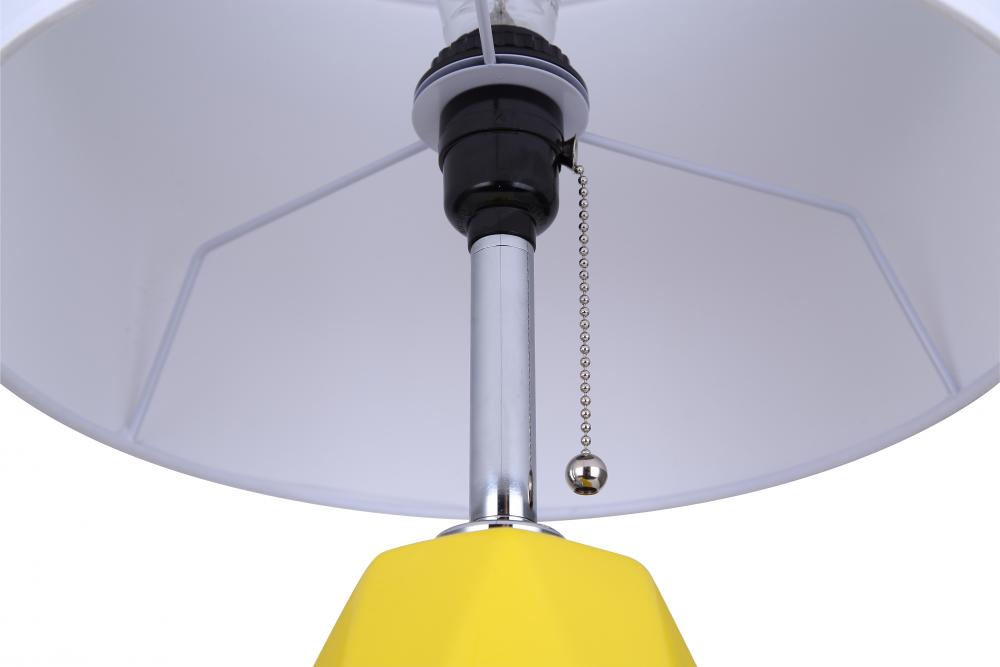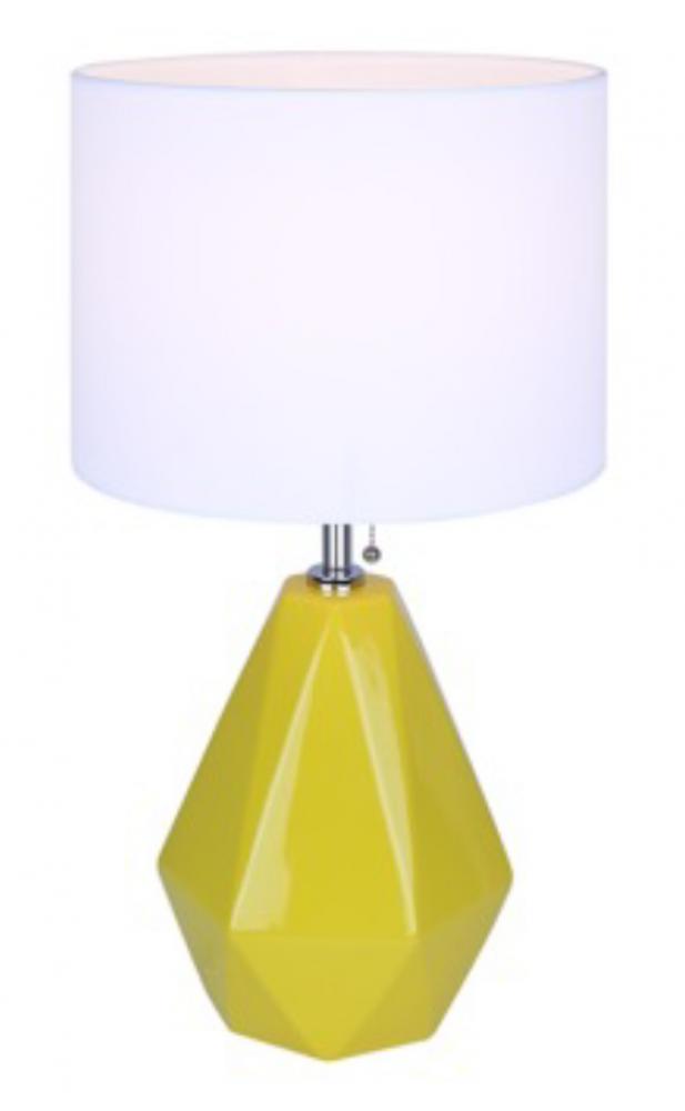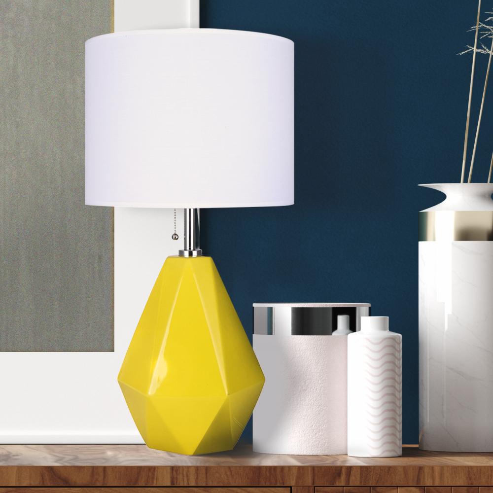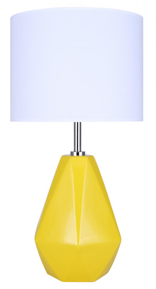 Bold and Vibrant Design: The Persei Table Lamp features a striking mustard yellow base that adds a vibrant splash of color to any room, paired with a sleek chrome finish for a modern touch