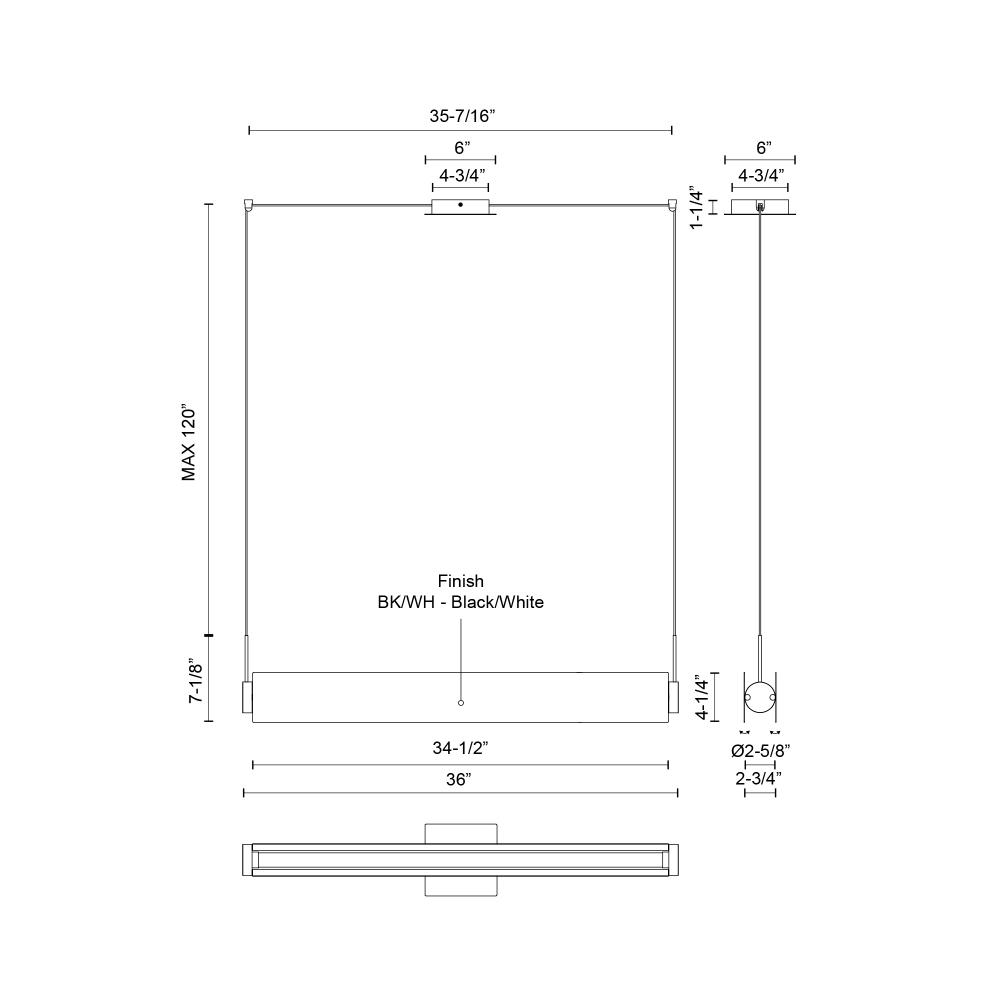 Kuzco Lighting LP73536-BK/WH-UNV - Phoenix 36-in Black/White LED Linear Pendant