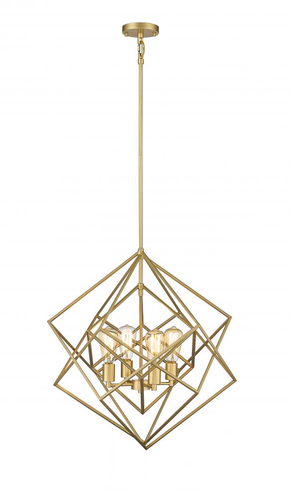 "The meaning of life is to find your gift. The purpose of life is to give it away." A true gift to any cubist enthusiast, the Picasso pendant defies traditional perspective. Cagelike cubes overlap one another in a fascinating geometric collage, while the grouping of exposed bulbs accents each daring angle. He's bold in monochrome black, dazzling in painted gold, timeless in black & brushed nickel, and dynamic in black & soft gold. Playing with planes of light, shapes and space, Picasso is guaranteed to captivate his beholders and become a legend of modern style.