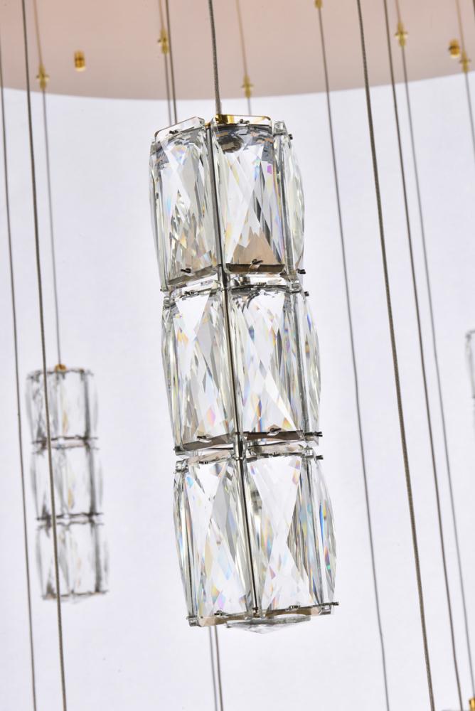 The chandelier features a mesmerizing crystal faceted design that adds a touch of glamour and sophistication to any space. The faceted crystals create a stunning play of light and reflections, illuminating your room with a radiant glow.