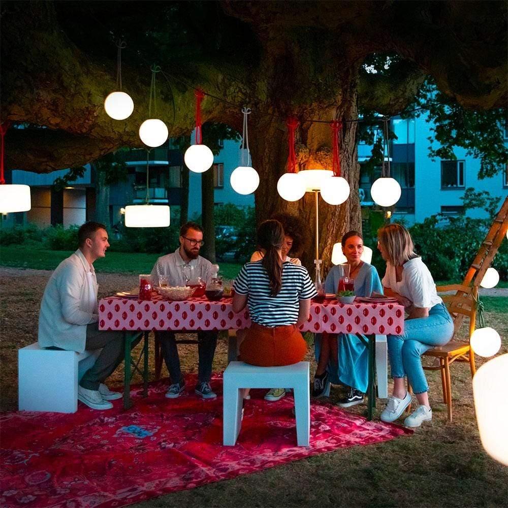 Creating light wherever you like! Bolleke is a creation from the Dutch Nathalie Schellekens. For the loop, she was inspired by the hair elastics and sailing binder smart systems. The name, It's coming from the round ball shape; Bolleke in Dutch. Bolleke is the ultimate mood maker. It ramps up the ambience wherever you use it. And you don't need an electrical outlet or extension cable either. This spherical light can easily be hung on a cord or hook on a tree or even under your parasol. Time to go inside because darkness has fallen, why? With Bolleke the evening is still young.