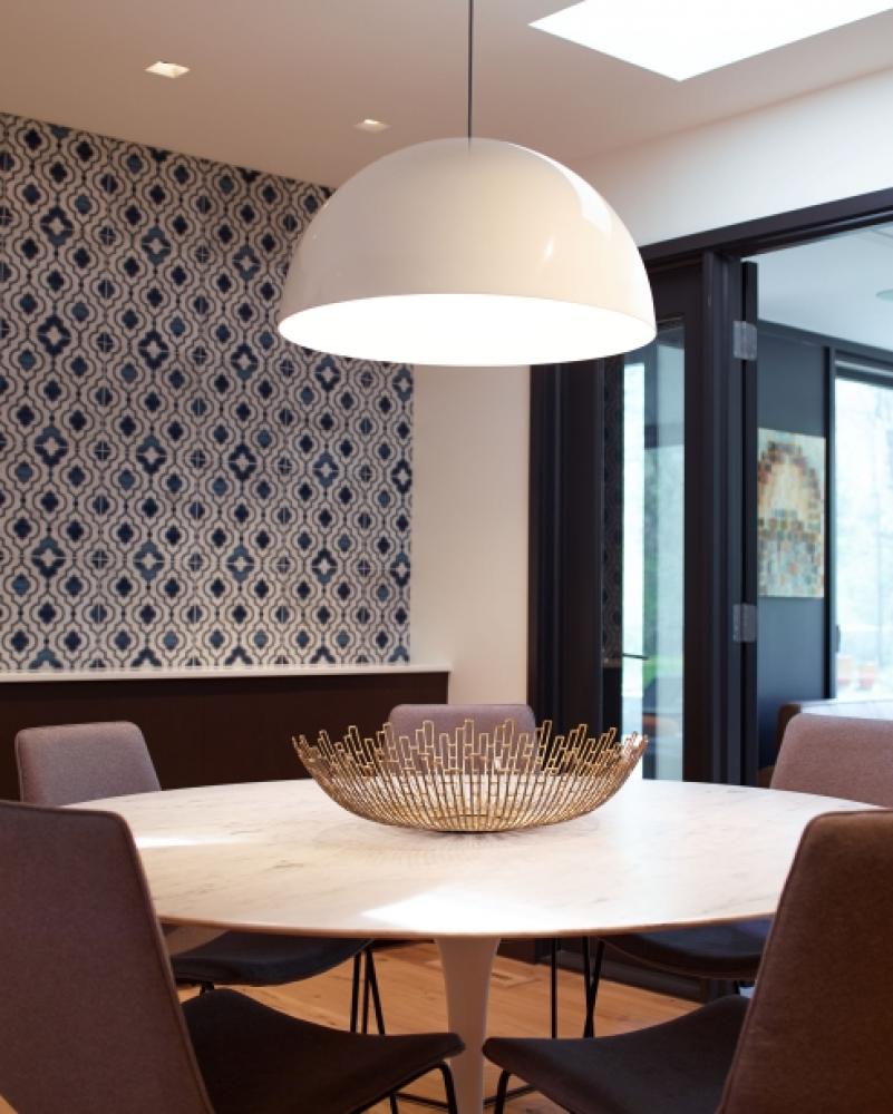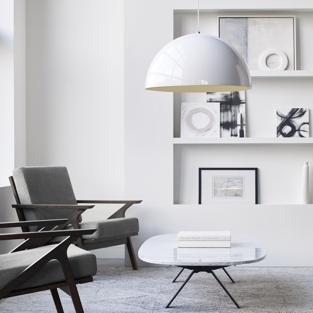 High-end spun metal pendant that features a high-gloss finish