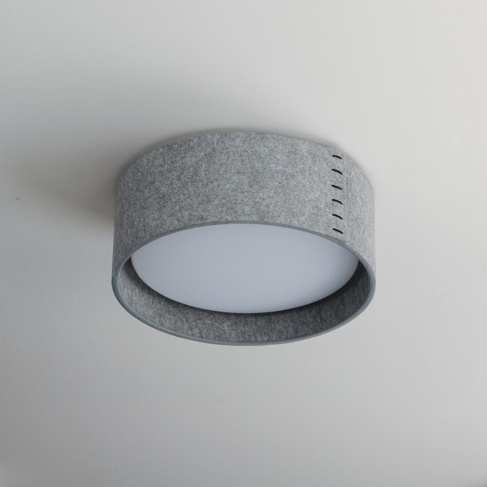 Drum shades in a variety of fabrics and materials are a core lighting offering. Flush mounts, pendants, and ADA sconces are available in options of linen, organza, grasscloth, and sound absorbing grey felt shades. An internal acrylic diffuser, illuminated
