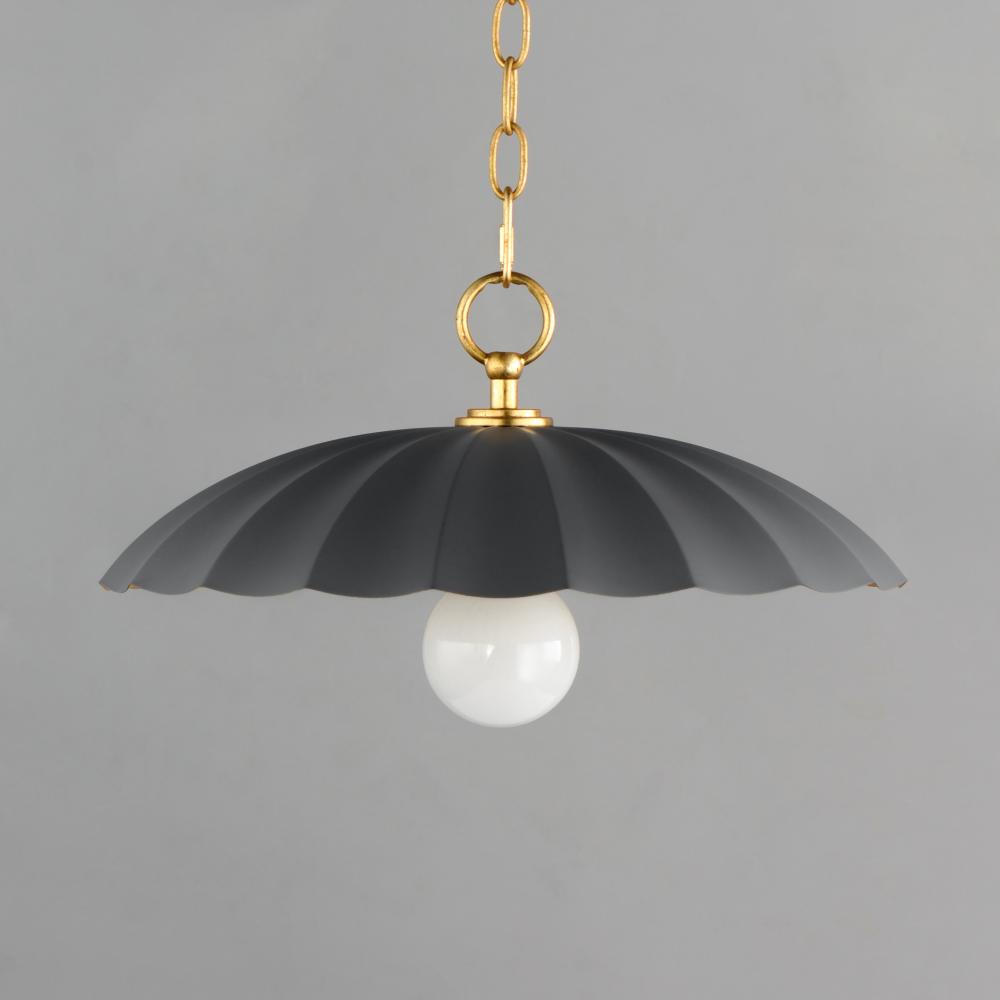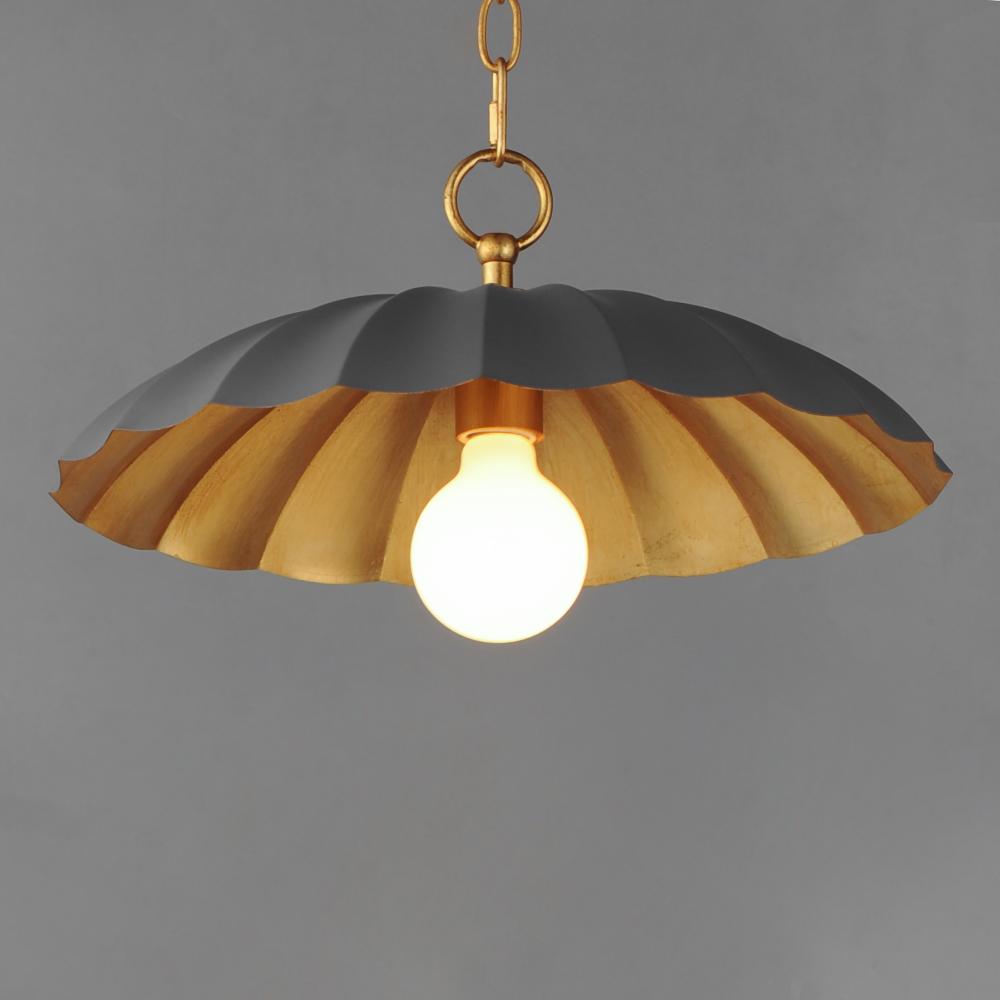 This refreshing collection features the nostalgic detailing of scalloped metal shades with gold leaf interiors. The hand applied gold-leaf interiors reflect the light source within the shades casting a warmer glow downwards. The collection is offered in ch