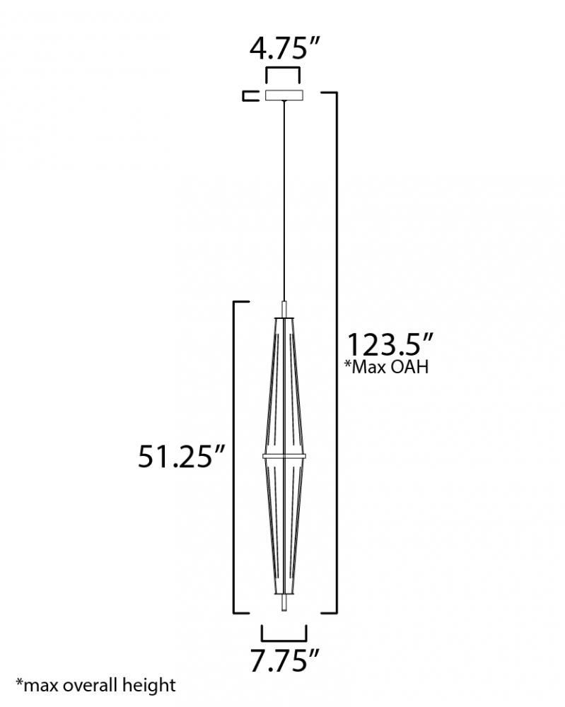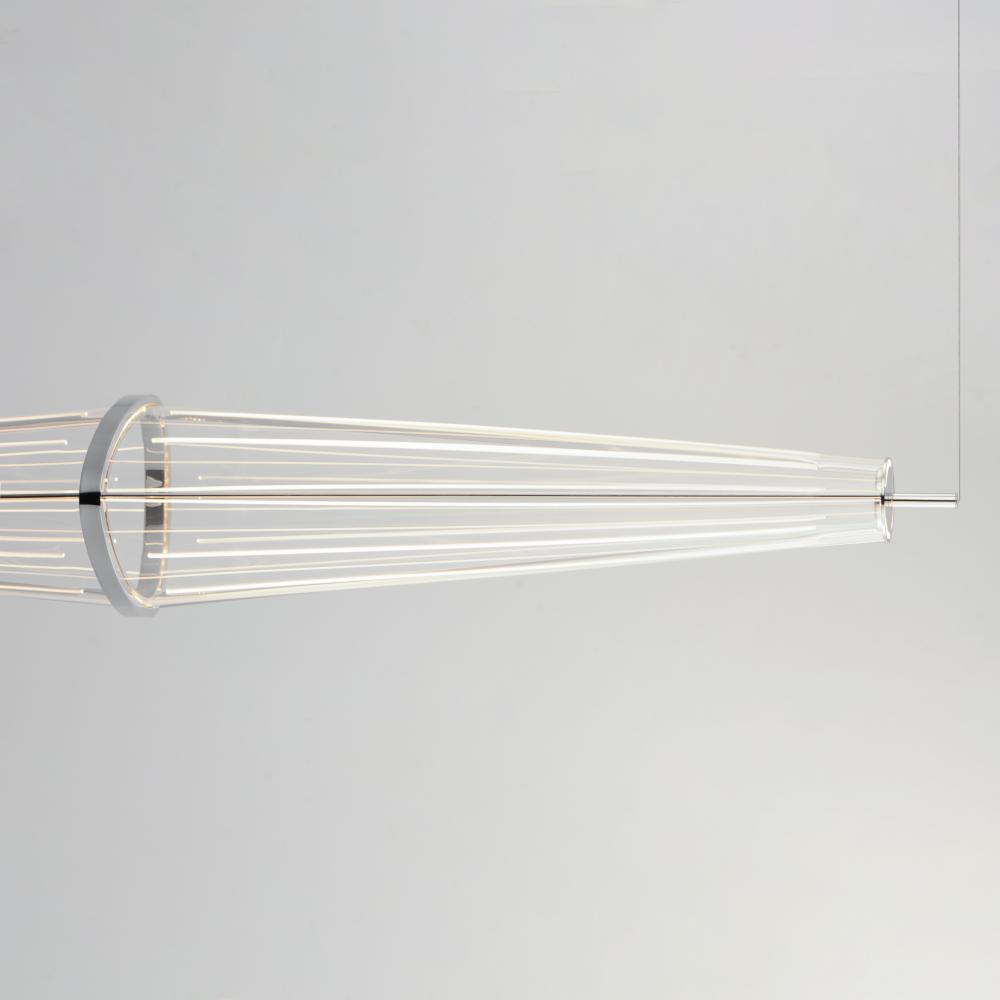 A arrangement of stainless steel and light guided acrylic form elongated rhombus shapes discreetly lit by LED. On the larger size pendants an additional aircraft cable kit is provided so that you can mount the pendants either vertically or horizontally at