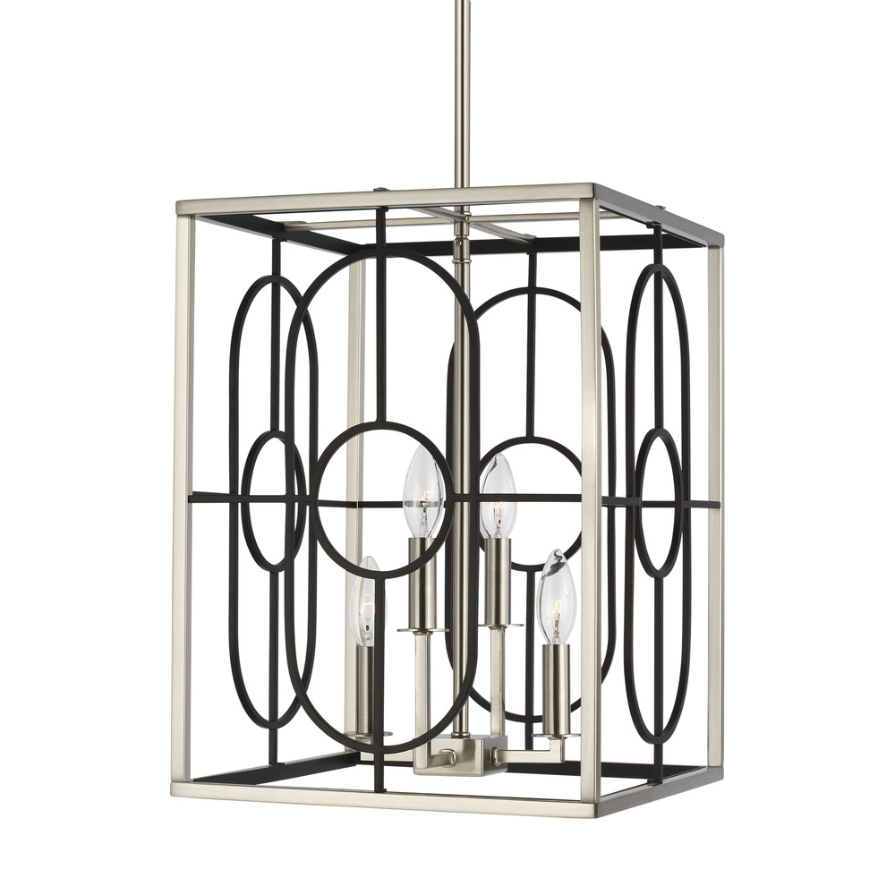 The Rennie four light indoor pendant in brushed nickel enhances the beauty of your home with ample light and style to match today's trends. Rennie showcases a rectangular frame celebrates geometric interplay with dramatic patterns in a modern form.