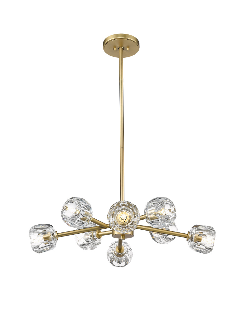 Inspired by the infamous artist with the ability to capture color and light as it dances through the atmosphere, the Renoir chandelier is a work of art in itself. Each polished stem holds an intricate blossom of reflective light that shimmers overhead. The clear glass shades are carved from gentle brushstrokes and add texture of tradition, while the sleek arms reference a more modern style. A dazzling focal point in any gallery, the Renoir will enchant his beholders and is sure to become a timeless masterpiece.