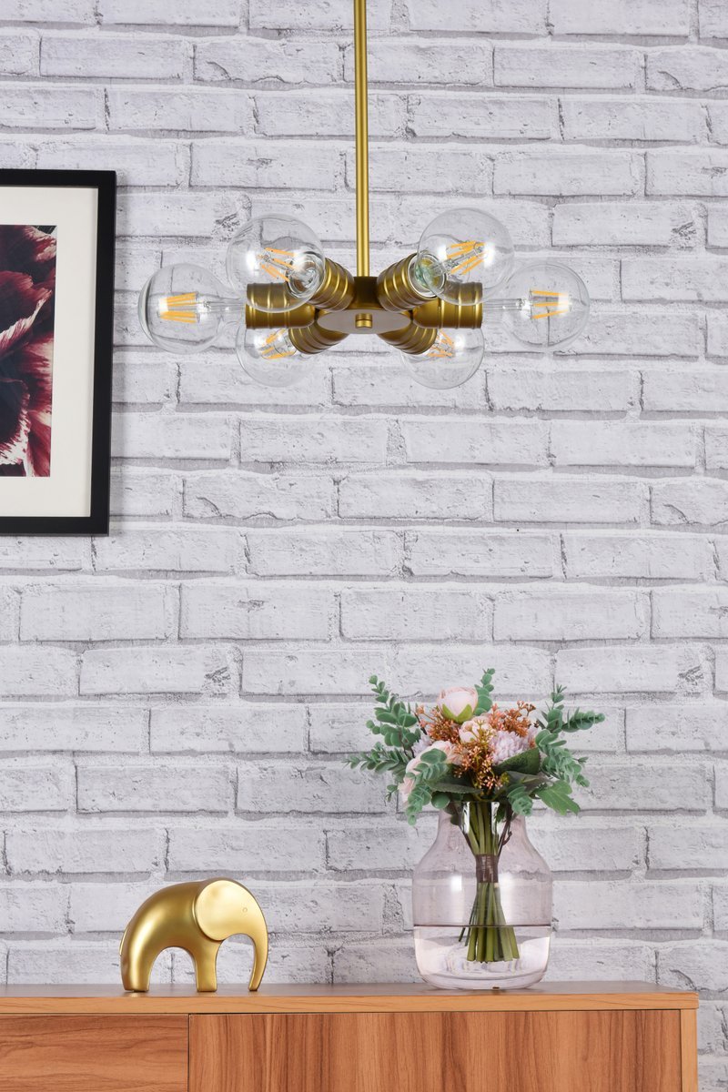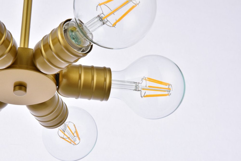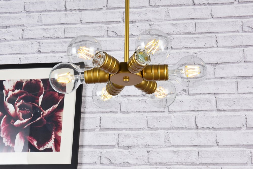 Illuminated by 6 e26 base light bulbs; bulbs are not included