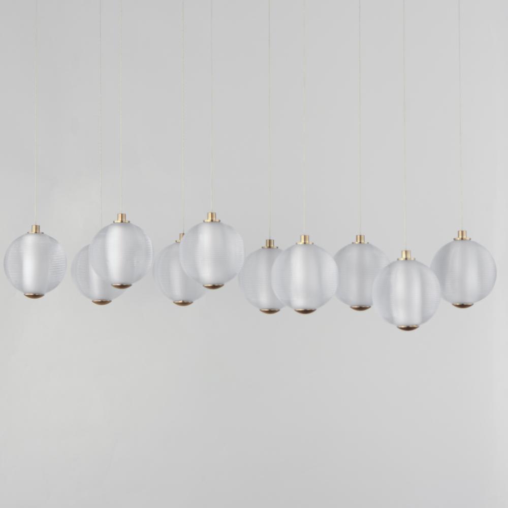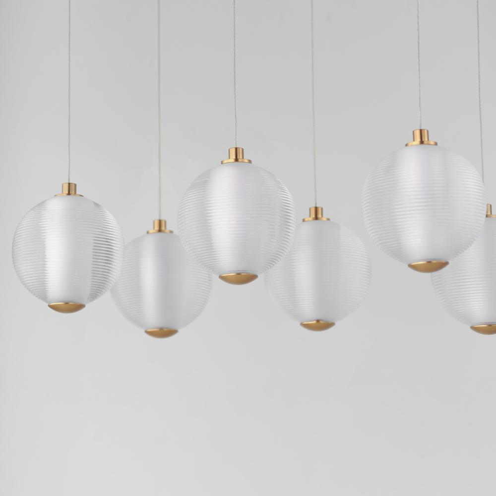Ablaze with omnidirectional LED light radiating from the center of perfectly ribbed spheres, the lustrous glow within accentuates the repeating pattern on the glass' exterior. With minimal hardware visible outside the glass, select from Polished Chrome