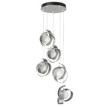 Pendant or semi-flush? The versatile Riza 5-Light can be either! Customizable cable lengths can be shortened to create a dramatic semi-flush; while longer lengths allow you to create a cascade of staggered light, gather them together at one length, or any design that suits the space. The Riza design is striking with its sculptural, modern style. The hammered texture of the shaped aluminum “curls” are handmade by our artisans in Vermont.