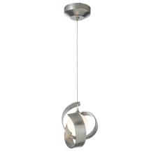 A single, low-voltage pendant that demands attention, the Riza Low Voltage Mini Pendant makes a statement on its own. Hang in multiples above a kitchen island or bar, or as a single light above a foyer accent table, bedroom night stand, or on either side of a vanity. The Riza is as versatile as it is beguiling with its "curl" of hammered aluminum, made by hand in Vermont.