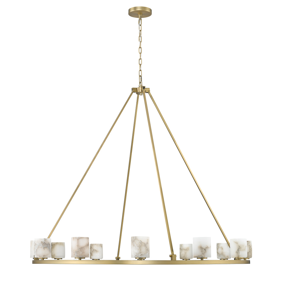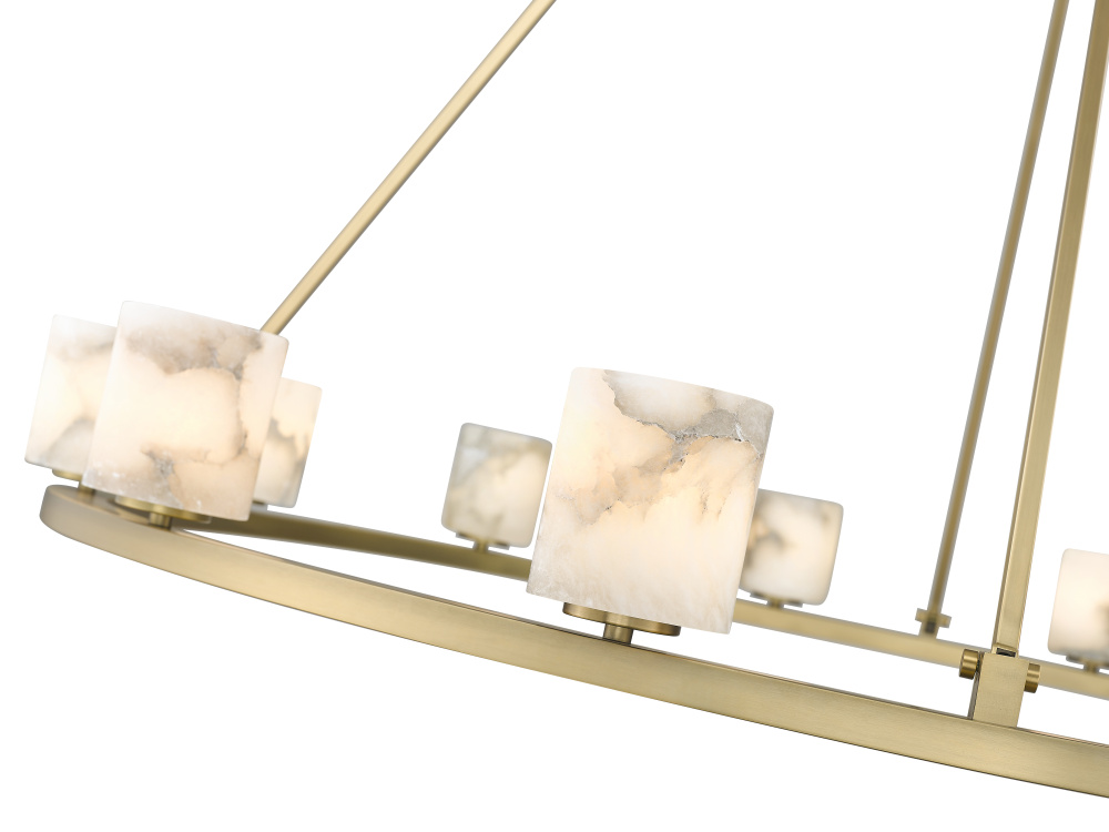 Each shade on this one-of-a-kind fixture is made from natural alabaster stone. Variations in colour, veining and texture are expected and celebrated. Alabaster will range from milky white tones with no veining, to marbled patterns in golden and brown hues