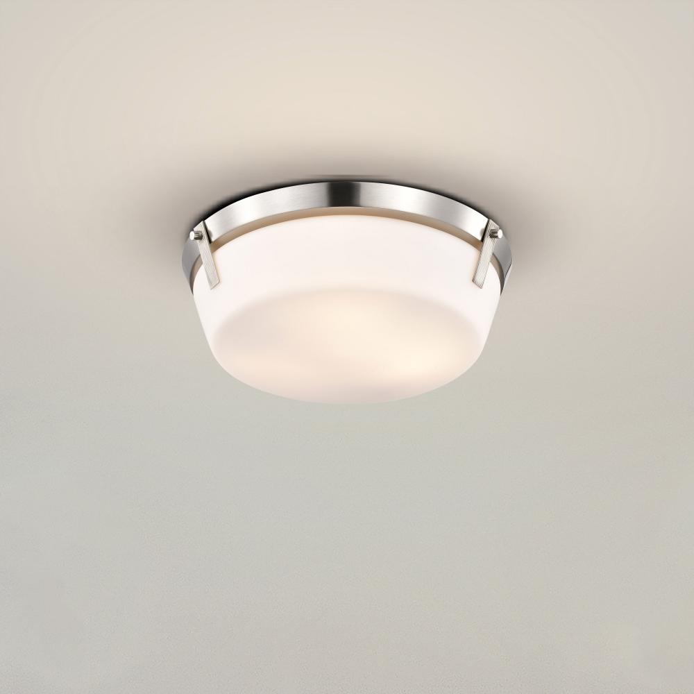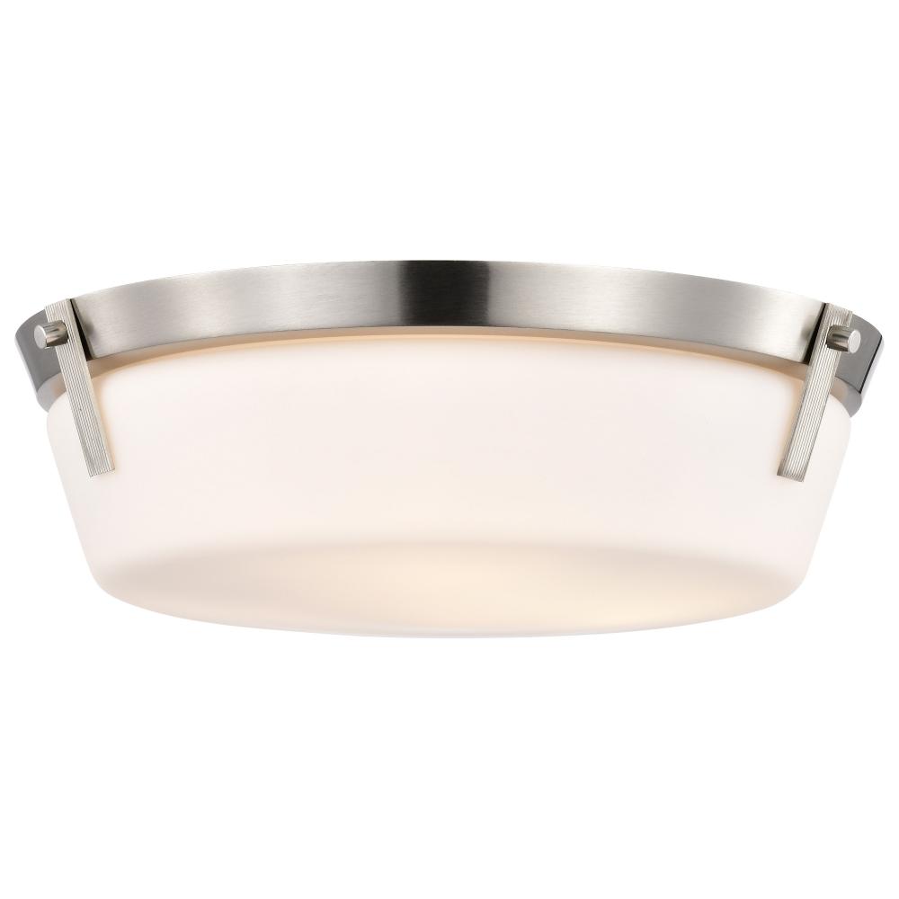 The Rowen Collection is a versatile series of flush mounts that exude elegance and sophistication. The brushed nickel provides a chic, inviting finish, and the etched white glass diffuses the light to create a soft and ambient glow. Rowen suits a variety o