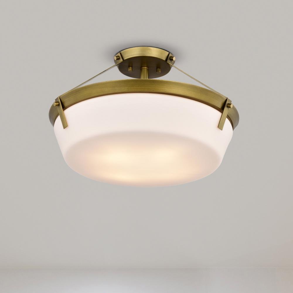 The Rowen 60-7753 semi-flush mount is a versatile lighting fixture that exudes elegance and sophistication. The natural brass finish gives the fixture a warm and inviting look, while the etched white glass diffuses the light to create a soft and ambient gl