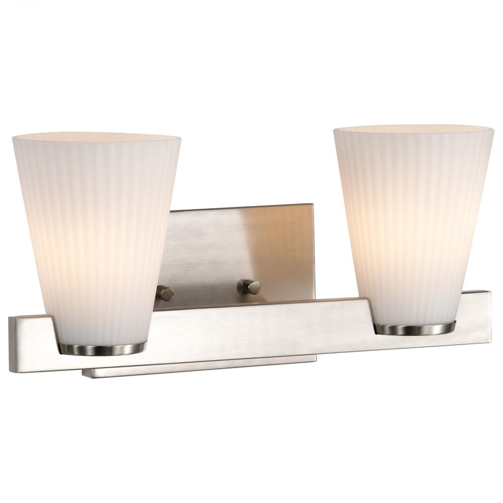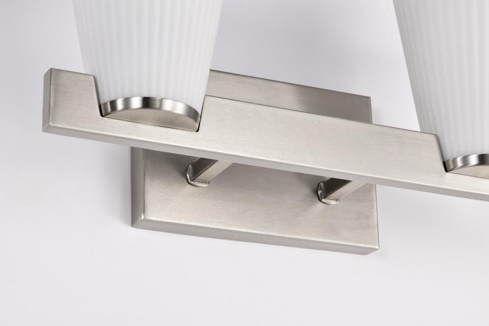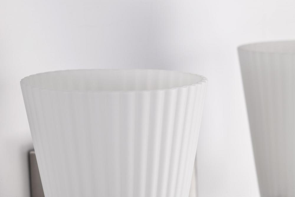 Indulge in the glamour of the Royale Collection, where sleek Art Deco silhouettes meet modern refinement. The satin white pleated glass adds texture and sophistication, diffusing light with a soft, radiant glow. Available in brushed nickel and burnished br