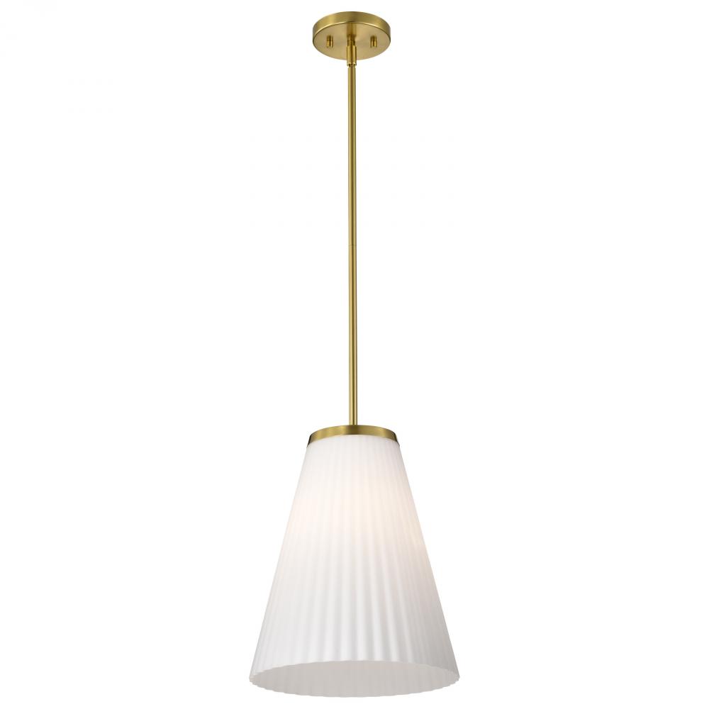 Indulge in the glamour of the Royale 60-8728 one light large pendant, where sleek Art Deco silhouettes meet modern refinement. The satin white pleated glass adds texture and sophistication, diffusing light with a soft, radiant glow. Finished in burnished b